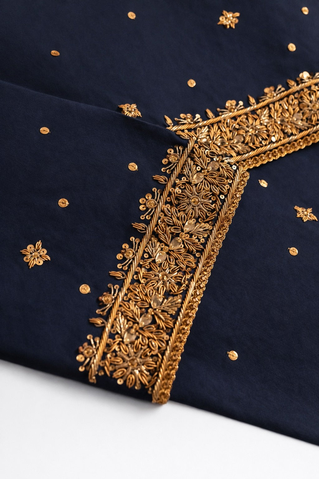 Embellishment: Gold & silver hand embroidery, Mukesh work on dupatta