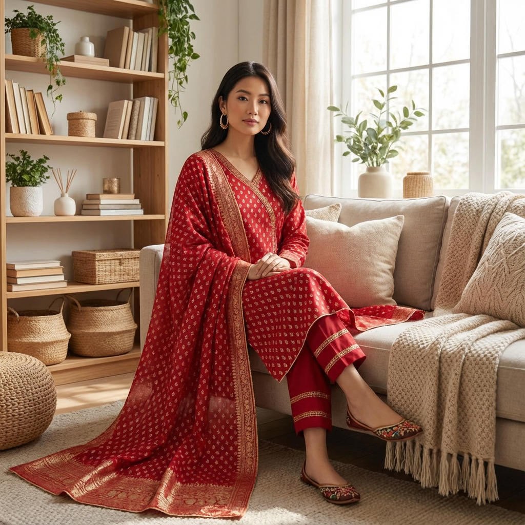 3 Pcs Khadi Net Blockprinted Suit for Women - KF523