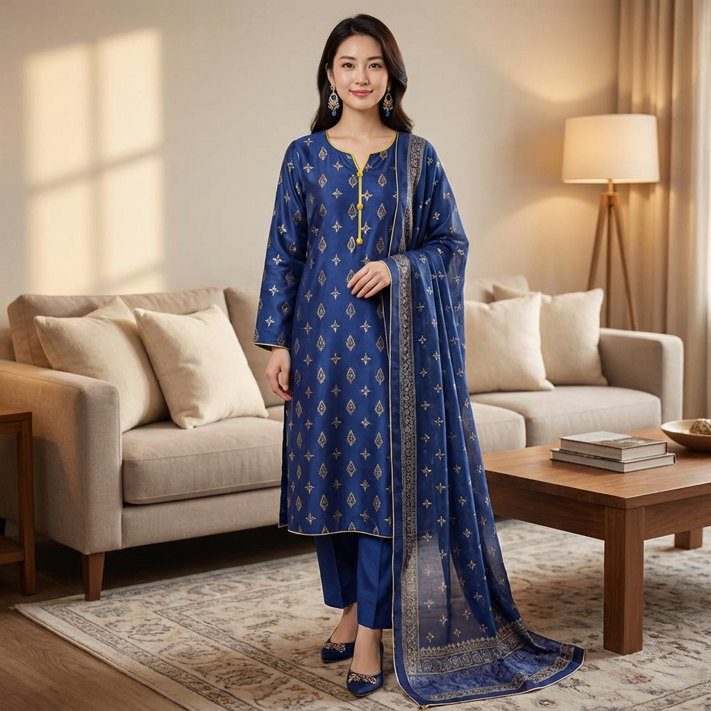 3 Pcs Lawn Block Print Suit for Women - KF529