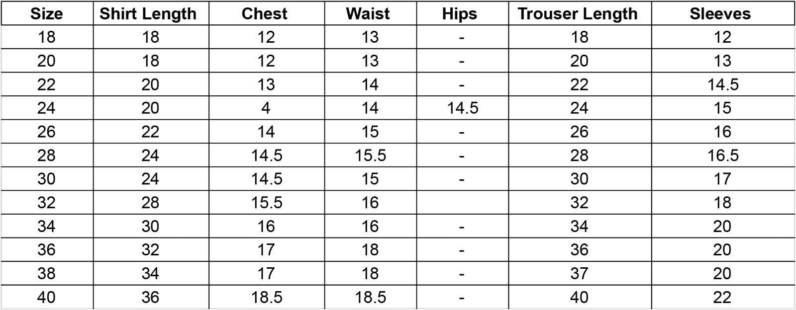 Sizes: 18, 20, 22, 24, 26, 28, 30, 32, 34, 36, 38, 40