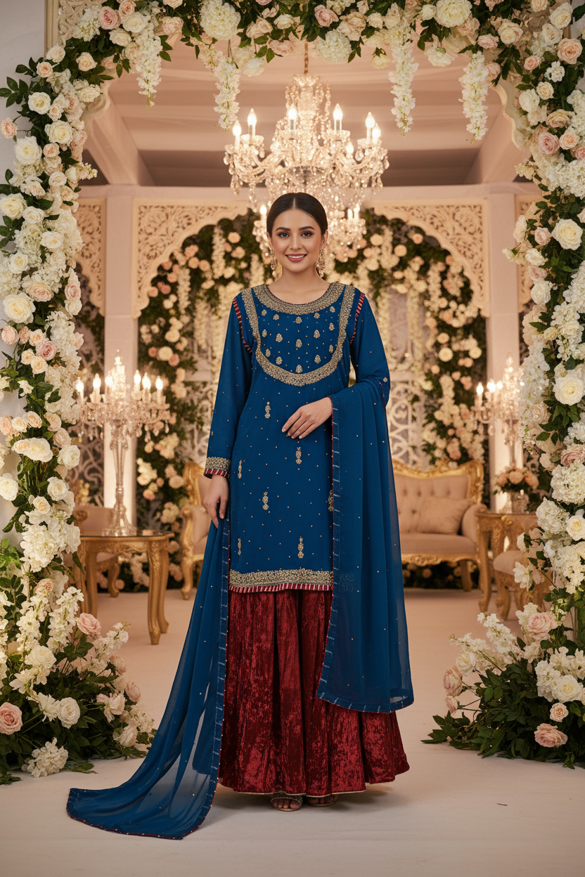 Dupatta: Chiffon dori pippin with fancy less around all four sides